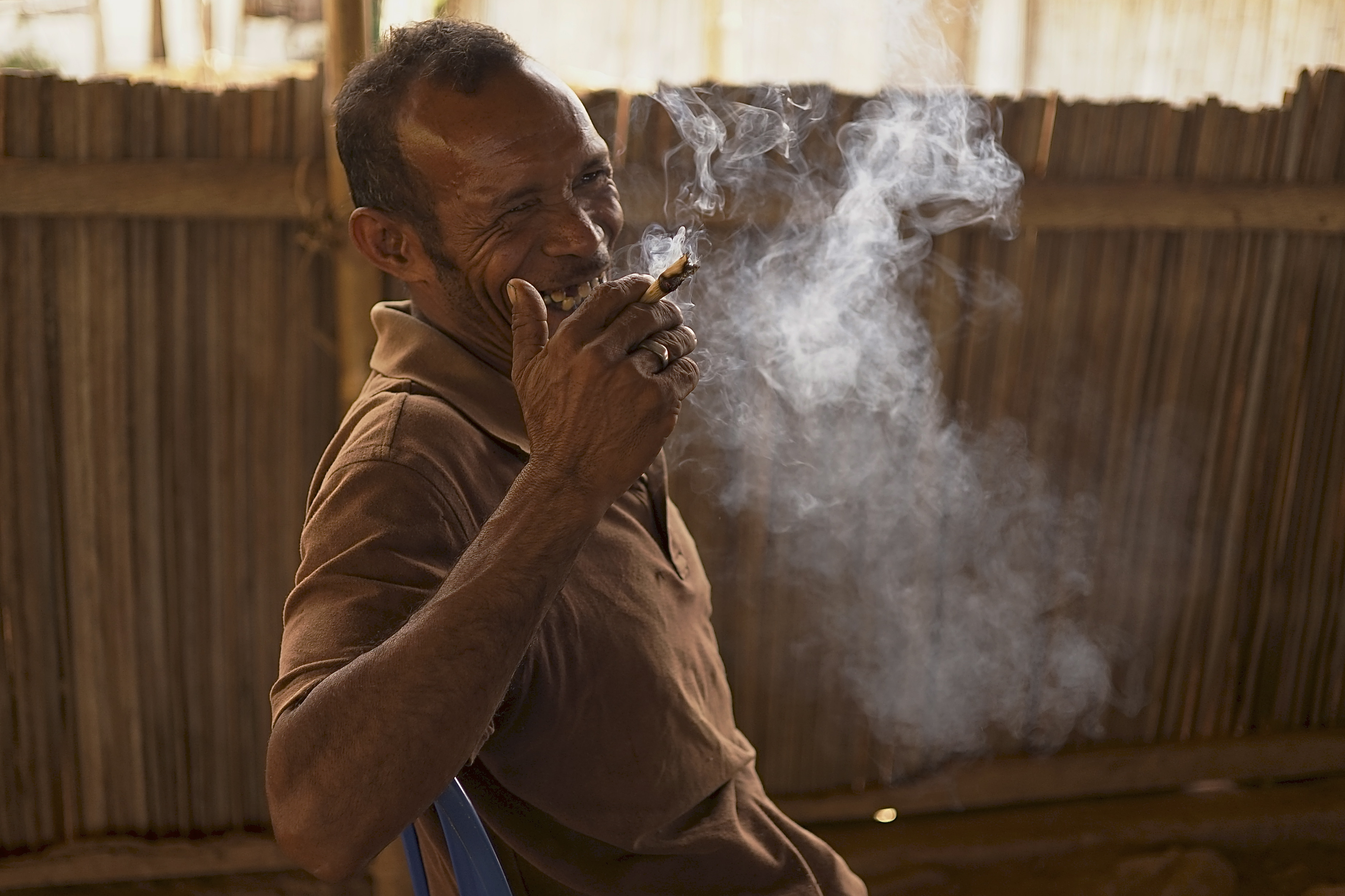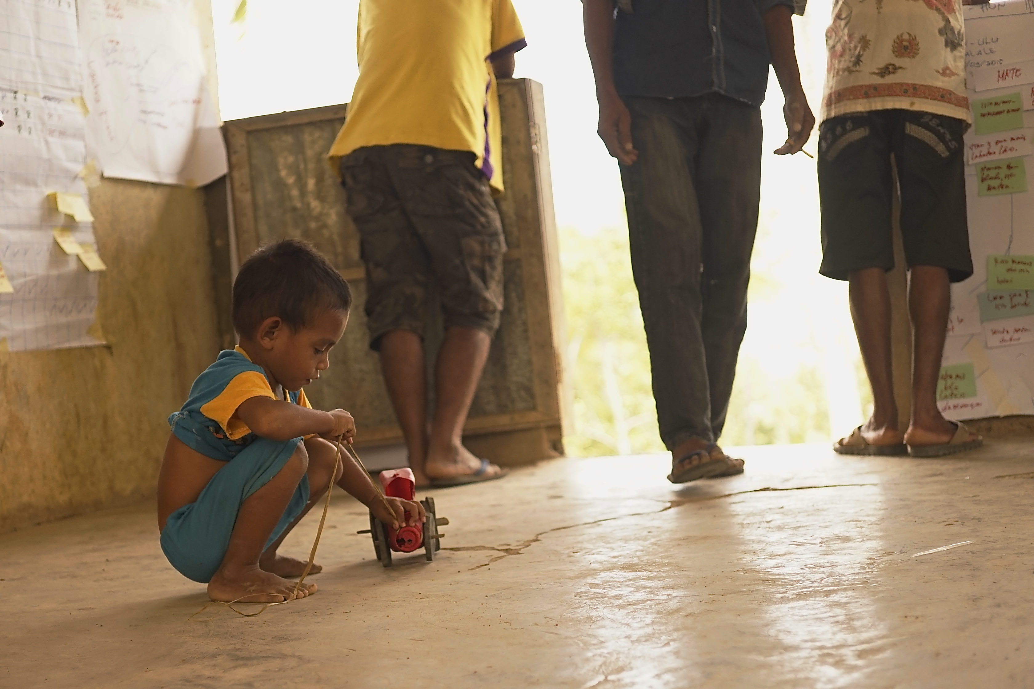Boys played soccer at the feet of Matebien, Timor-Leste. Planning for nutrition took place for two days in this community. This community plans to do interventions of fish farming and gardening vegetables high in vitamins.A 96 year old man tells stories of the changes he has seen in his village in Timor Leste. He talked about the difference in democracy and the leadership from occupying and colonizing powers until now. He focused on the fact that although freedom is good people often fear the responsibility it brings.People work together on the “problem tree analysis” as part of the Community Action Planning for nutrition in Loilu, Timor-Leste. The problem tree helps people identify nutritional problems and solutions. A child plays off to the side of the Community Action Planning with his home-made toy car. Life in the community does not stop during planning. Often while parents and grandparents discuss nutrition issues and solutions children play off to the side or even join in the discussion.Women from Bibileo, Viqueque, Timor-Leste discuss the differences in nutritional problems between women and men.A man takes a break from discussing community nutrition by making his own cigar and smoking it to the side.The discussion was about what both women and men would do to help children and new mothers be more healthy. Her husband said, “men will make money to buy things for women”. She quickly replied, “when have you ever bought anything for me!” The entire room broke into laughter including her husband.